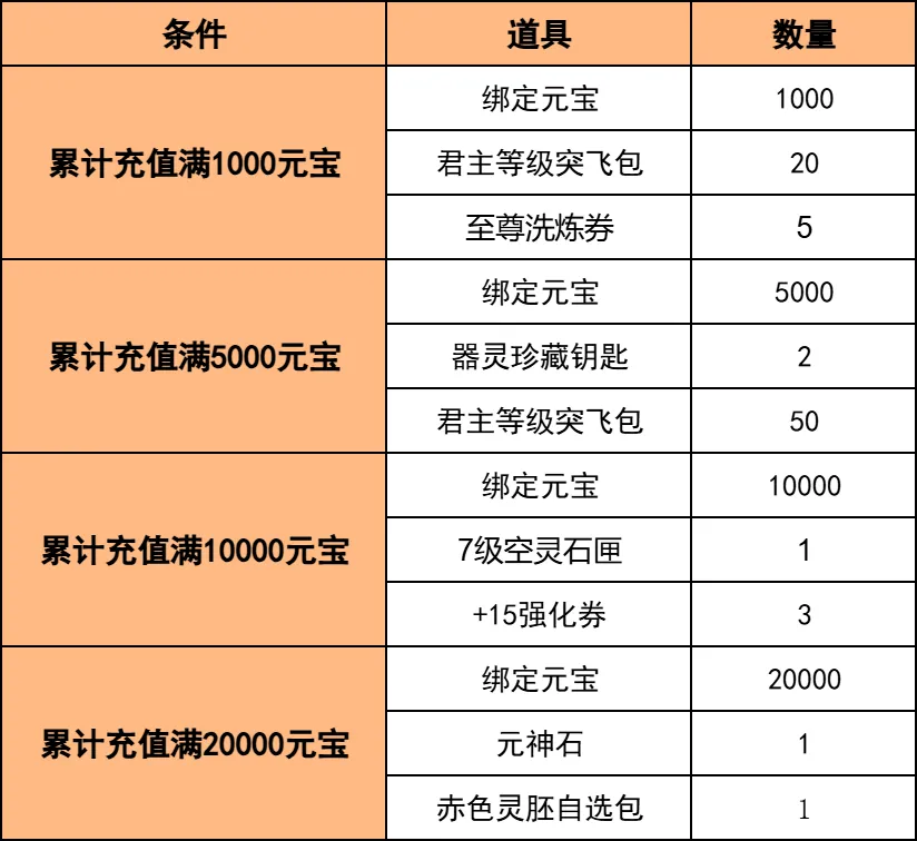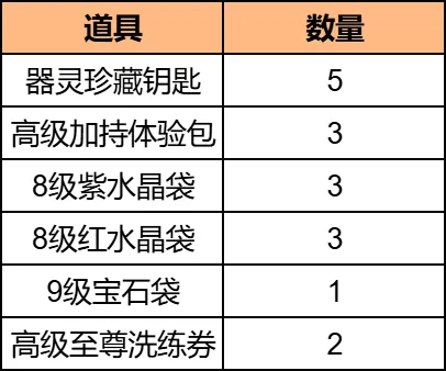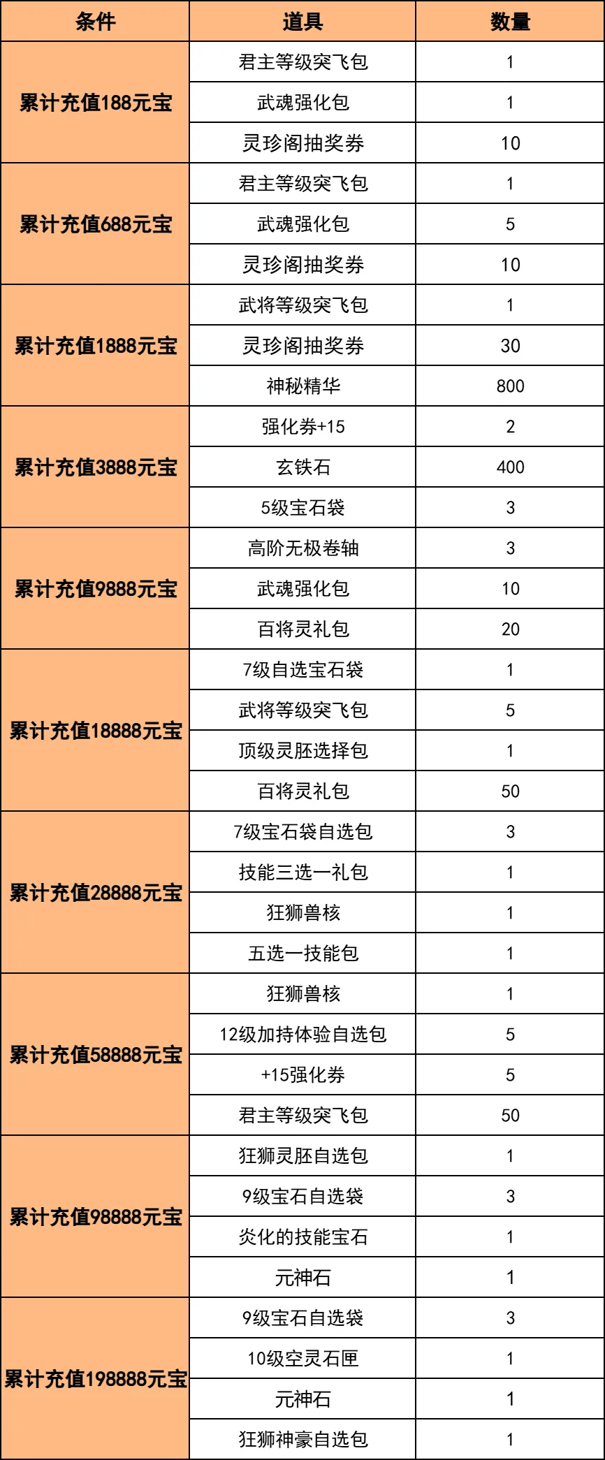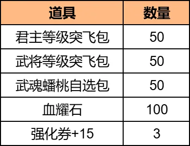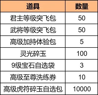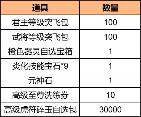 绑定元宝 × 66、小瓶体力药水 × 1、封炎币 × 66、将灵礼包 × 1